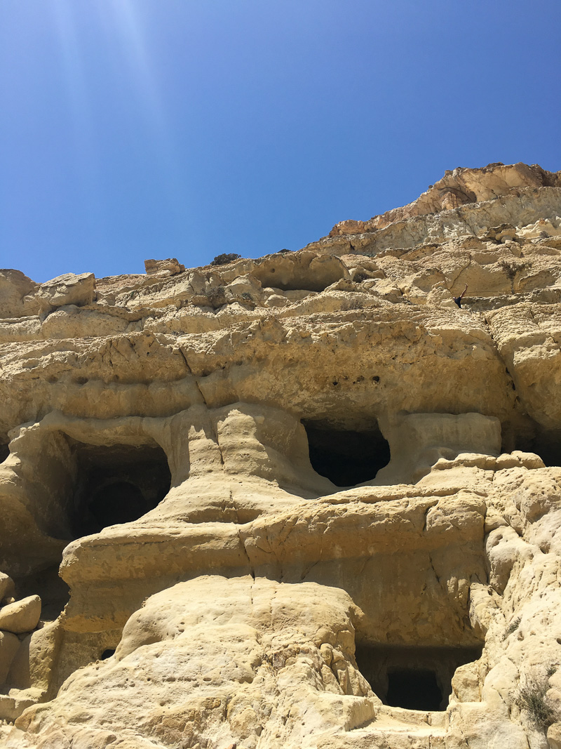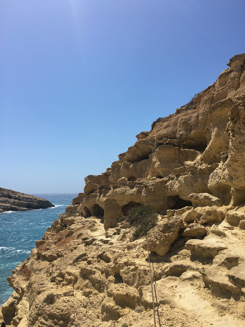 Pour accéder aux grottes = 2 euros. Attention, ça n’est pas hyper sécurisé : de temps en temps, une toute petite corde borde la falaise. Plus de probabilités de t’y prendre les pieds que d’être retenu en cas de chute, m’enfin elle a le mérite d’exister.