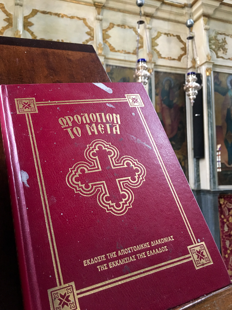 En sortant du site principal, nous avons trouvé facilement un peu plus loin l’église des dix martyrs : minuscule avec une dizaine de sièges seulement, et bâtie au-dessus de la crypte où reposent les reliques desdits martyrs. En revanche, nous avons cherché mais jamais trouvé le temple d’Apollon (demi-tour après avoir tenté à pied un chemin de campagne… et abouti devant un enclos à l’entrée matérialisée par un crâne de chèvre. Ouais, on va pas insister.)