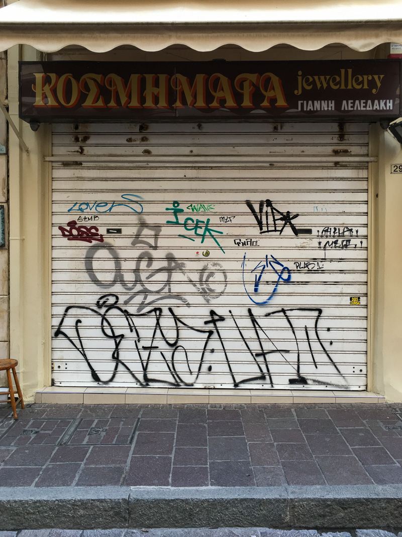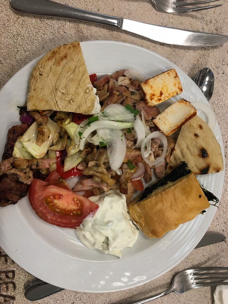 Après avoir erré sans résultat pour trouver un resto que Jo avait repéré sur Tripadvisor (ça arrive au moins une fois par voyage, on devrait en faire une rubrique récurrente), nous avons atterri un peu au hasard au Krio Vrisali.