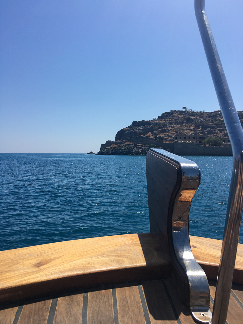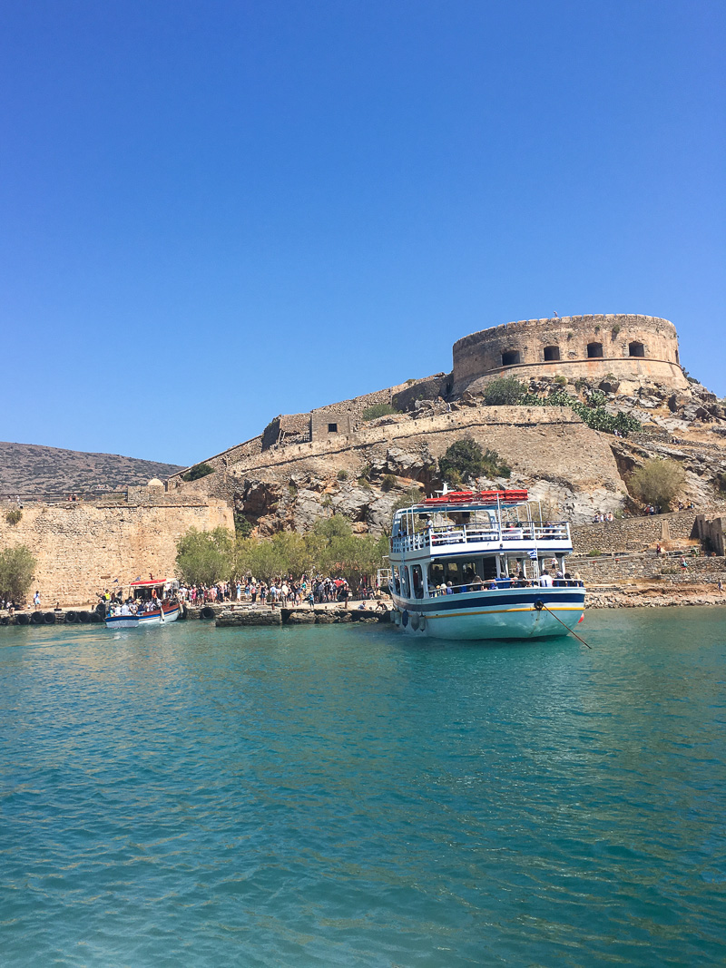 Il faut prendre le bateau pour traverser depuis Plaka plutôt que depuis Elounda, c’est un peu moins cher : 8 euros l’aller-retour. Info utile pour le retour : le ticket fonctionne pour tous les bateaux qui repartent vers Plaka ; même si ce n’est pas le même bateau qu’à l’aller, c’est ok. La traversée dure moins de 10 minutes.